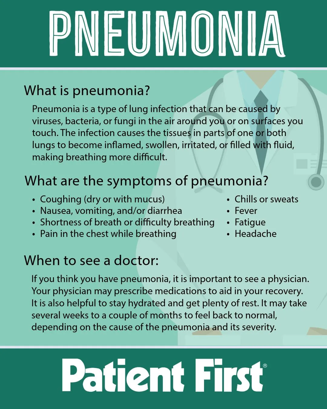 With the number of colds, allergies, COVID, and RSV on the rise this holiday season, it’s important to be aware of the possibility that a respiratory illness could develop into another condition- pneumonia.